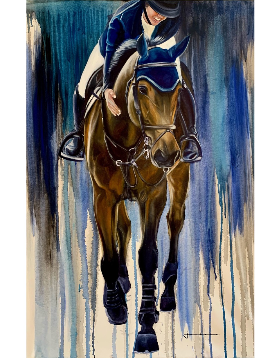 Before his art career started in 2020, Jackson’s future plans had always been to continue his show-jumping career. Growing up with parents who enjoy riding, Jackson learned to ride when he was 7 years old on his parents’ horses but didn’t start training seriously until he was 11 at Foxtrail Farms North in Okotoks, Alberta. From there, he continued to advance and learn the ins and outs of riding, training and running a professional stable.