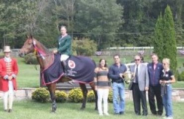 Wednesday evening, May 29, at the Dixon Oval, featured a grab-bag of events designed to enlighten and entertain spectators who think of The Devon Horse Show as primarily a hunter/jumper venue. But it is much more than that, and in fact the logo of the show, founded in 1896, is a hackney pony reflecting the show’s origins in the meeting of wealthy landowners on “The Main Line” to improve the quality of horses and ponies pulling carriages and buggies. Equestrian disciplines competing at The Show are as varied as Saddlebreds, Roadsters (trotting horses), Hackney Horses and Ponies, Friesians, Coaching and Carriage Pleasure Driving in addition to Hunters, Jumpers and Equitation. There is a thriving Country Fair in conjunction with The Show featuring 63 vendors of all sorts selling clothes, hats, jewelry, furniture, toys, games, pottery and antiques, food, arcade games, a ferris wheel and a merry go round. Dressage in honored with a six day show of its own in the September. So when 7:00 rolled around on Wednesday evening there was a full schedule of events including jumpers, side saddle, hackney ponies, five and three gaited horses and coaching. Buried within that list was class 366, the Five Gaited Special at 9:20 P.M. The organizers had put together a class bound to get some attention. Riding “five gaited horses” were 5 of the top jumper riders in the country